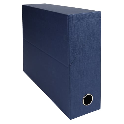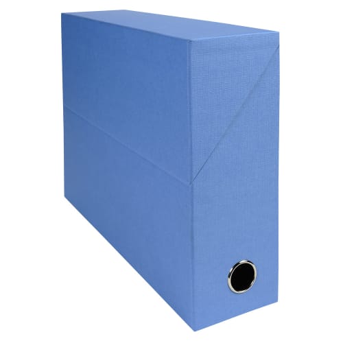 En carton rigide recouvert de papier toilé teinté, cette boîte transfert est très pratique pour archiver proprement tous les dossiers volumineux.