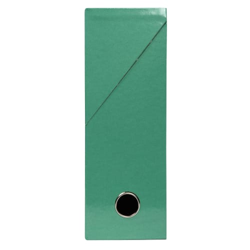 En carton fort recouvert de papier teinté dans la masse et pelliculée. Dos 9 cm. Œillet de préhension métal.