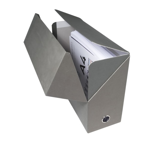 Pratique et économique, ces boîtes carton recouvert de papier teinté sont idéales pour archiver proprement tout type de dossiers.