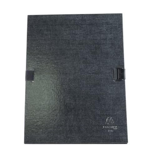 Couverture papier toilé verni. Fermeture par sangle à clip. Dos extensible jusqu’à 13 cm. Rabat rainuré en pied.