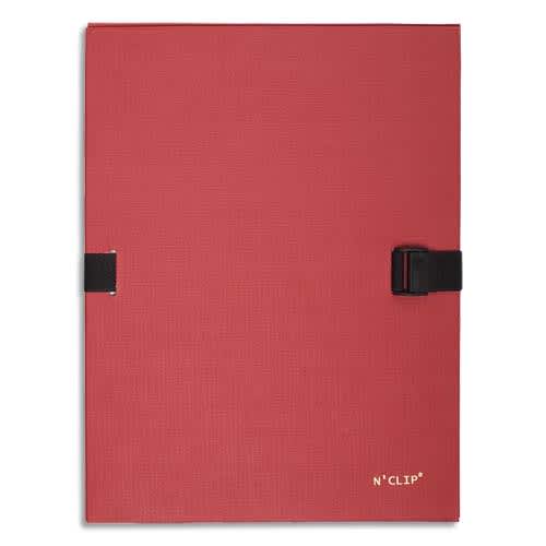 EXACOMPTA Chemise extensible NCLIP en papier toilé. Sangle à clip. Dos rainuré 13cm. Coloris rouge