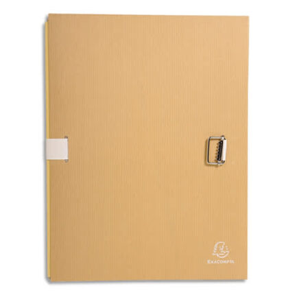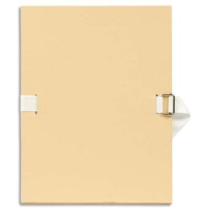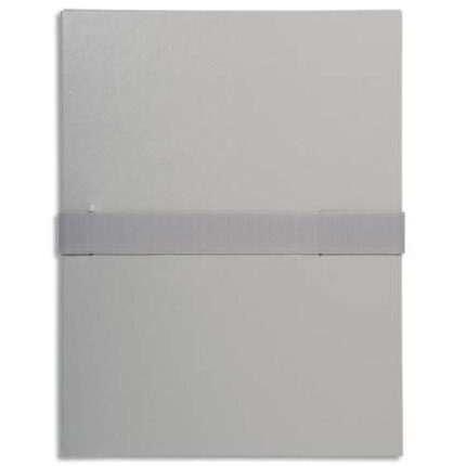 Couverture en papier toilé teinté. Dos extensible jusqu’à 13 cm. Sans rabat en pied. Fermeture par sangle assortie au coloris de la chemise. Boucle à coulisseau cranté.