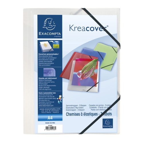 EXACOMPTA Chemise personnalisable 1 face à élastique polypro KREACOVER coloris Blanc transparent