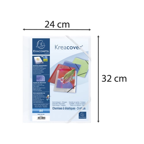 EXACOMPTA Chemise personnalisable 1 face à élastique polypro KREACOVER coloris Blanc