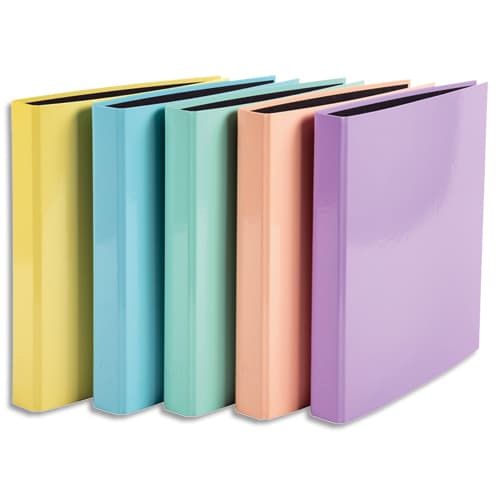 Classeur 4 anneaux 26x32cm rembordée pelliculé 18/100°. Dos 4 cm. Coloris assortis