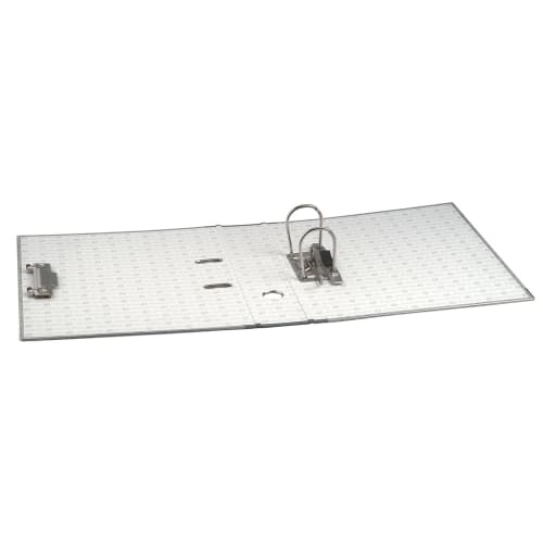 OEillet de maintien et de préhension. Renforts métalliques à la base du classeur pour éviter une usure prématurée en position verticale.