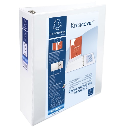 EXACOMPTA Classeur personnalisable KREACOVER 3 faces 4 anneaux Ø60 mm en D. En polypropylène Blanc.