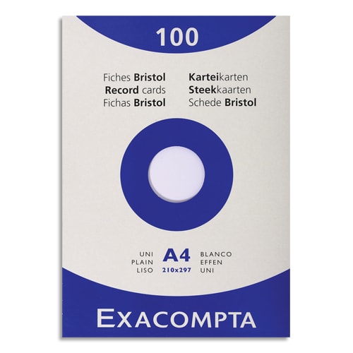 EXACOMPTA Etui de 100 fiches bristol non perforées 210x297mm (A4) unies Blanc
