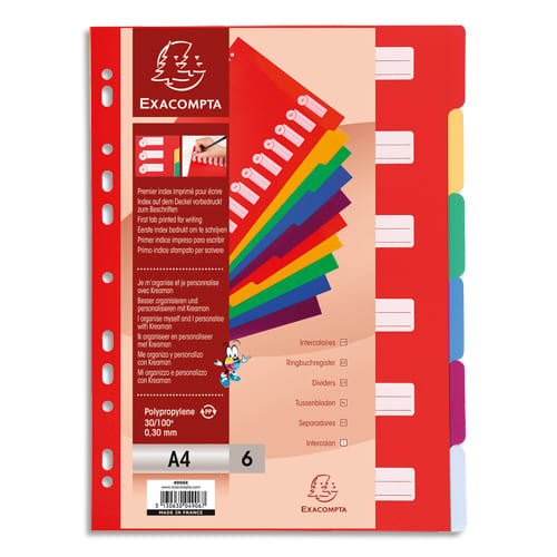 EXACOMPTA Intercalaire en polypropylène, format A4, 6 positions assortis pastel