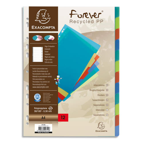 EXACOMPTA Intercalaires A4 12 positions FOREVER en polypropylène assortis