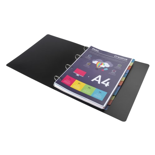 En polypropylène translucide 3/10e. 100% recyclé. Fabriqué à partir de déchets récupérés, triés et réutilisés. Page d’indexation imprimable. Intercalaires effaçables. Perforation 11 trous.