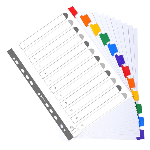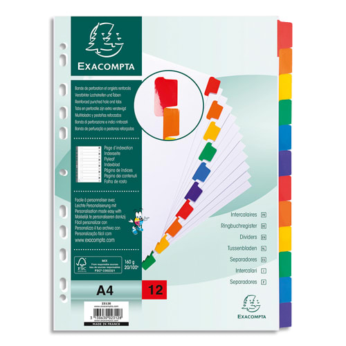 EXACOMPTA Jeu d’intercalaire 12 positions en carte Blanche 170g, onglets Mylar®. Format A4.