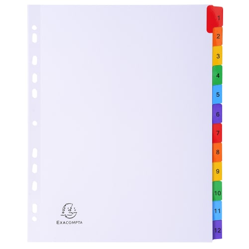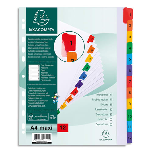 EXACOMPTA Jeu d’intercalaire numérique 12 positions en carte Blanche 170g, onglets Mylar®. Format A4+.
