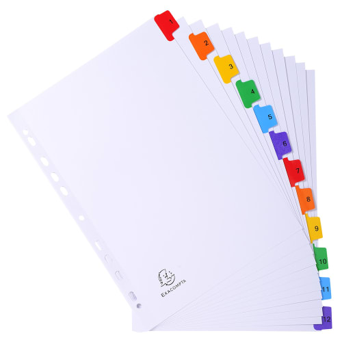 EXACOMPTA Jeu d’intercalaire numérique 12 positions en carte Blanche 170g, onglets Mylar®. Format A4.