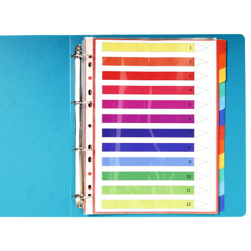 EXACOMPTA Jeu d’intercalaires 12 positions format 24x32cm pour pochettes perforées. Carte lustrée 3/10e.