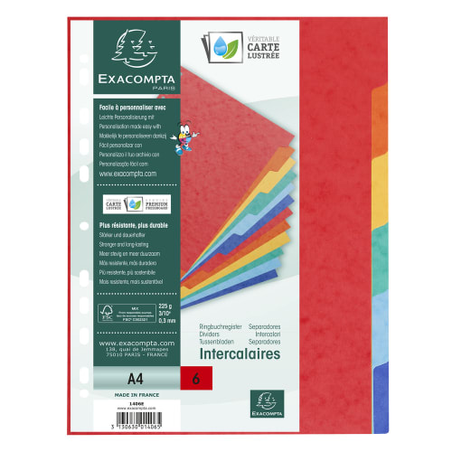EXACOMPTA Jeu d’intercalaires 6 positions en carte lustrée 3/10e format A4 225g