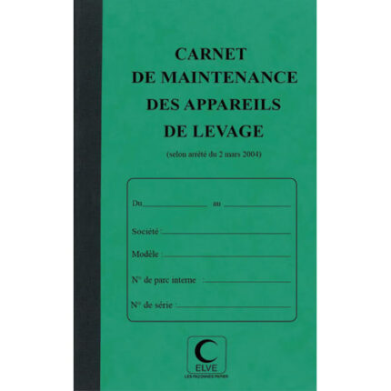 ELVE Piqûre 32 pages carnet maintenance p/ appareil de levage folioté de 1 à 15. Format 21x13cm