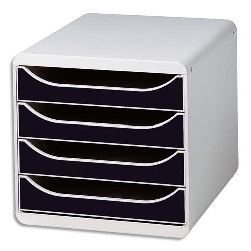En polystyrène choc. Caisson individuel à 4 tiroirs (hauteur 4,4 cm) pour documents au format A4+ (24 x 32 cm). Monobloc, ultra-rigide.