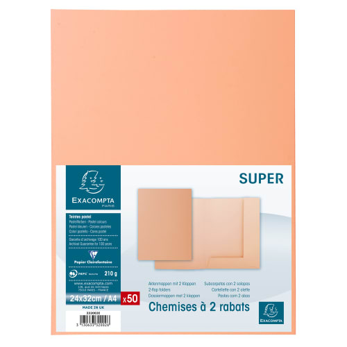 EXACOMPTA Paquet 50 chemises 2 rabats carte 210g SUPER 250. Coloris bulle