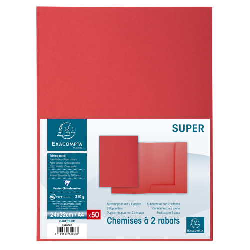 EXACOMPTA Paquet 50 chemises 2 rabats carte 210g SUPER 250. Coloris Rouge