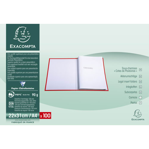 EXACOMPTA Paquet de 100 cottes de plaidoirie papier fort 90 grammes coloris Blanc