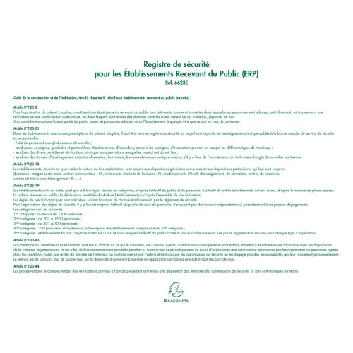 EXACOMPTA Registre de Sécurité pour les ERP format 24x32cm, piqûre 20 pages 6623E