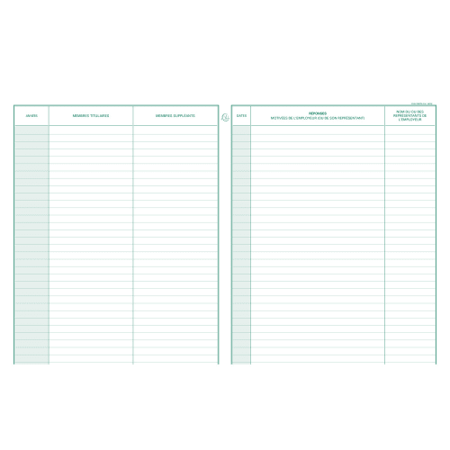 Permet de consigner les demandes de la délégation du personnel du Comité Social et Economique (CSE) et les réponses du chef d’entreprise ou des représentants légaux de l’entreprise. En fin de registre, 5 pages permettent également de noter par ordre chronologique l’identité des membres de la délégation du personnel du CSE (titulaires et suppléants).