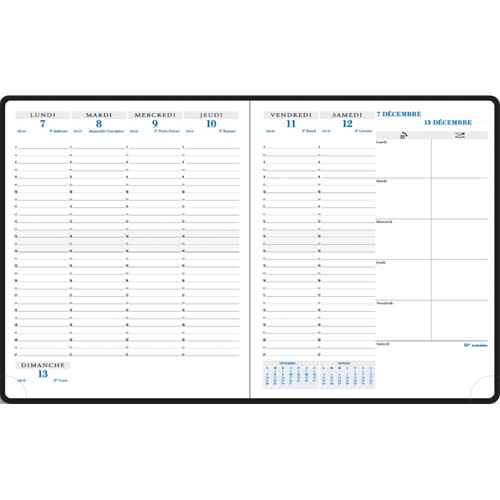 Semainier Barbara de Janvier à Décembre. Horizon 22. Avec répertoire. – Format : 18,5 x 22 cm. Noir.
