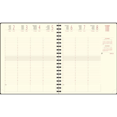 Agenda souple pratique avec sa finition spiralée et son élastique de fermeture. Janvier à Décembre, 1 semaine/2 pages. Eurotime 22S. Format : 18,5 x 22,5 cm. Assortis.
