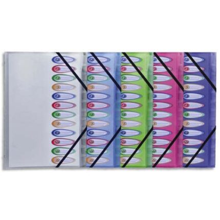 EXACOMPTA Trieur en polypropylène 8 compartiments A4. Fermeture par élastique. Coloris assortis