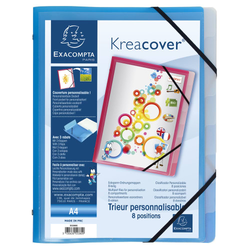 EXACOMPTA Trieur personnalisable KREACOVER, 8 compartiments, en polypropylène, assortis