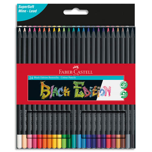 FABER CASTELL Pochette de 24 crayons de couleur Black Edition