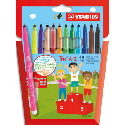 STABILO Trio A-Z feutre de coloriage pointe moyenne – Etui carton de 12 feutres – Coloris assortis