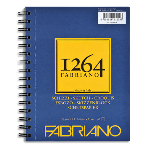 FABRIANO Bloc 1264 papier croquis. 60 feuilles A5. Papier blanc ivoire de 90 g/m². Spirale longitudinale
