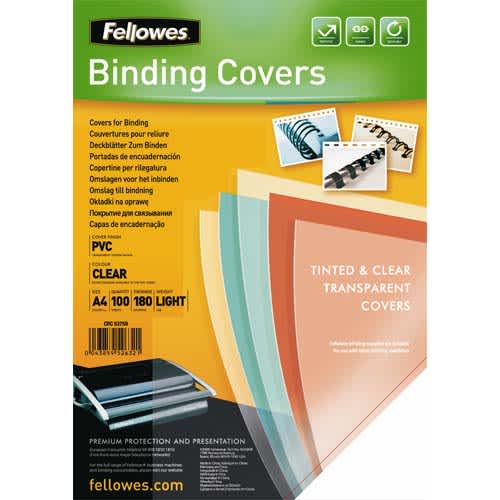 FELLOWES Boîte de 100 plats de couvertures PVC A4 180 microns 5375901
