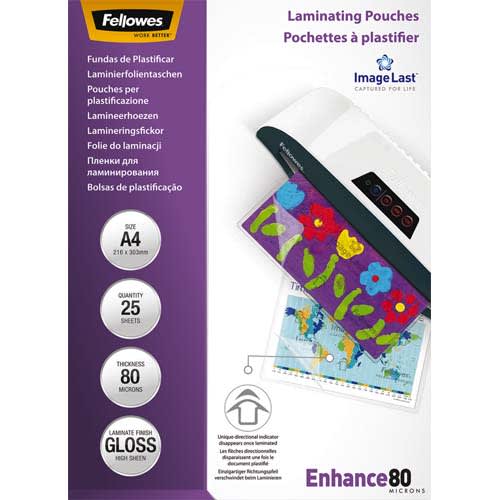 FELLOWES Boîte de 25 pochettes de plastification format A4 80 microns 53962