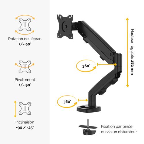 FELLOWES Bras porte-écran simple réglable EPPA, 1 écran jusqu’à 39 », noir, 9683101