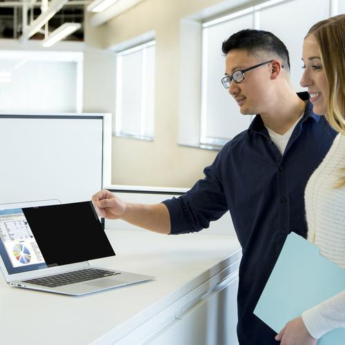 Protégez vos informations confidentielles sur votre ordinateur fixe, ordinateur portable, smartphone et tablette. Les filtres de confidentialité PrivaScreen™ opacifient l’écran lorsque vous vous situez à un angle latéral supérieur à 30°. La visibilité reste optimale pour la personne en face de l’écran sans flouter ni déformer l’image.