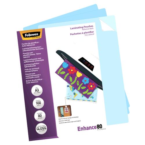 FELLOWES Pack de 100 pochettes A3 dos adhésif 80 microns 5302302