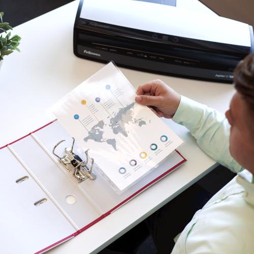 FELLOWES Pack de 100 pochettes pré perforées brillantes A4 80 microns 5452502