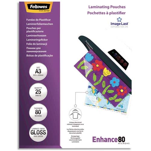 FELLOWES Paquet de 25 pochettes de plastification A3 80 microns 53964