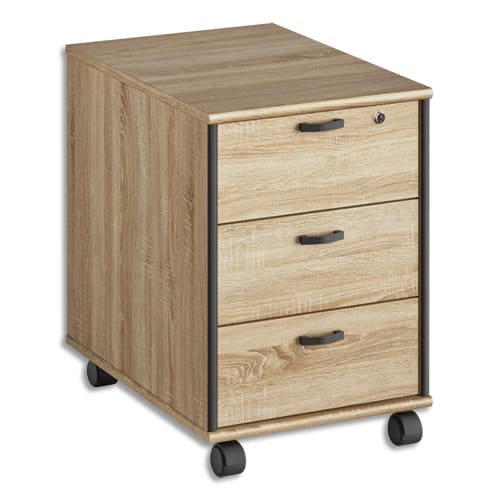 GAUTIER Caisson mobile 3 tiroirs de rangement avec serrure, L42xH61xP60 cm. Finition Chêne sonoma-Noir