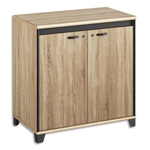 GAUTIER Rangement bas 2 portes battantes avec serrure L80 x H74 x P45cm. Finition Chêne sonoma-Noir