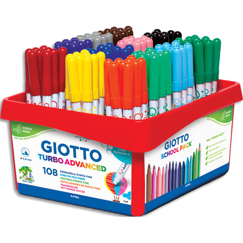 GIOTTO Schoolpack 108 feutres de coloriage TURBO ADVANCED pointe fine. Coloris assortis extra brillant