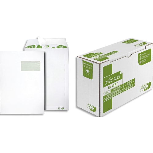 GPV Boîte de 250 pochettes recyclées extra Blanches Erapure, formatC4 229x324mm fenêtre 50x100mm 90g 2831