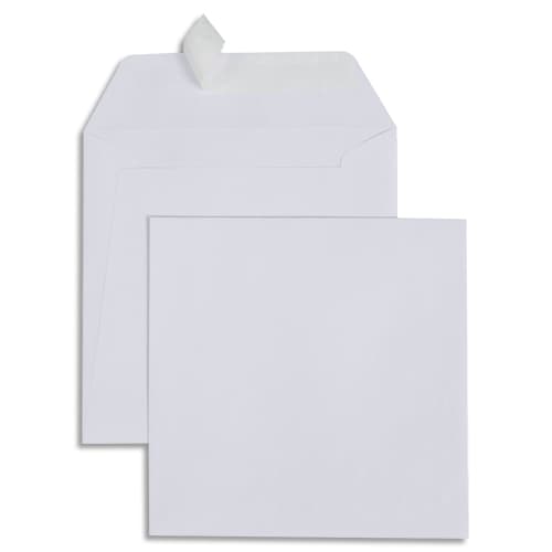 Enveloppes en papier vélin Blanc 120 g/m2, format carré pour invitation, faire-parts, voeux. Fermeture auto-adhésive.