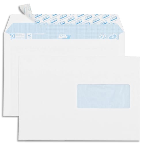 GPV Boîte de 500 enveloppes vélin Blanc 80g C5 162x229mm auto-adhésives avec fenêtre 45x100mm