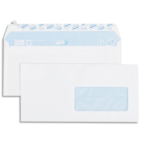 GPV Boîte de 500 enveloppes vélin Blanc 80g DL 110x220mm auto-adhésives avec fenêtre 45x100mm