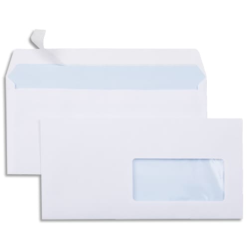 GPV Boîte de 500 enveloppes vélin Blanc 80g DL 110x220mm auto-adhésives avec fenêtre 45x100mm