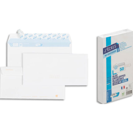 Enveloppe Blanche (en vélin Blanc fond Bleu pour les 90 g) pour les envois au quotidien.